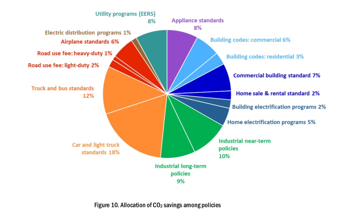 The hefty 46% emissions reduction from transportation efficiency are from transitioning to electric vehicles, driving less, flying less and moving our stuff around smarter.