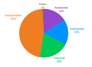 These are split between 3 sectors — buildings, transportation and the industrial, or manufacturing sector.