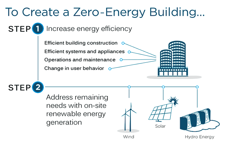 A net zero energy building is one with zero net energy consumption. Meaning the building will produce as much energy as is consumed.
